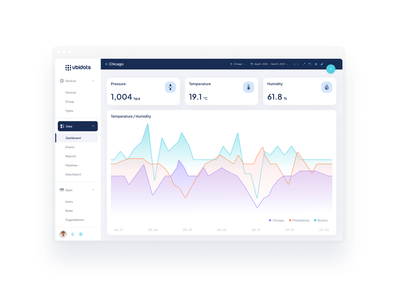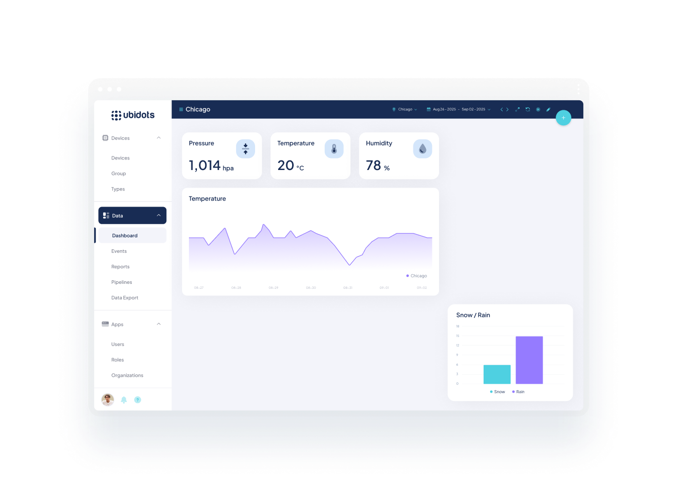 Mit Echtzeit- dashboards und intelligenter Automatisierung hilft Ihnen Ubidots dabei, schneller zu agieren, intelligenter zu arbeiten und mühelos zu skalieren – das spart Zeit, senkt Kosten und hilft Ihnen, Problemen einen Schritt voraus zu sein.