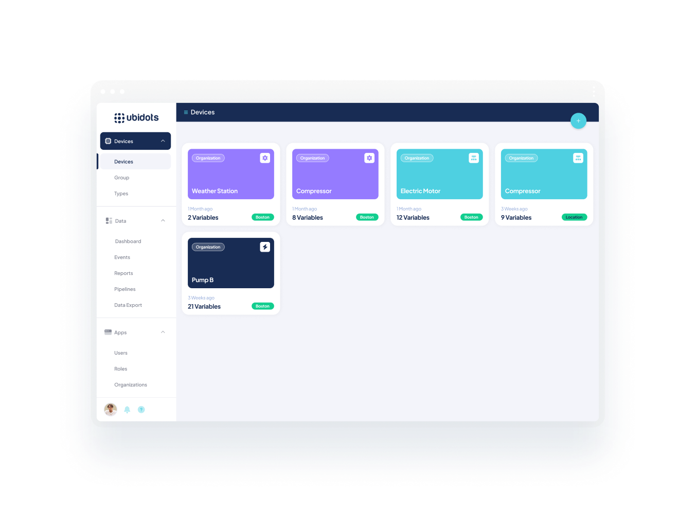 Ubidots genießt das Vertrauen tausender Unternehmen, Ingenieure und Systemintegratoren in Branchen wie Fertigung, Landwirtschaft, Energie, Gesundheitswesen, Smart Cities und vielen mehr. Die Plattform eignet sich ideal für alle Anwendungen, die die Fernüberwachung und -steuerung vernetzter Geräte erfordern.